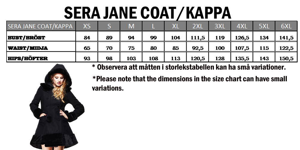 Hell Bunny Sera Jane Coat Plus Size Black är den mysigaste kappan du kan hitta med vacker fuskpäls, dubbelknäppning framtill och korsettsnörning baktill. Modellen kommer såklart från Hell Bunny!