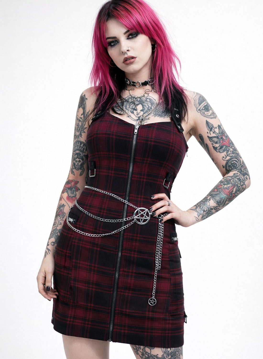 Bæltet passer perfekt overkjoler, nederdele eller høj taljeog fungerer både som et statement smykke og et taljebælte. Den robuste metalkæde giver et varigt indtryk, mens den forstærker etmørk mode æstetikinspireret af goth, rock og alternativ streetwear.